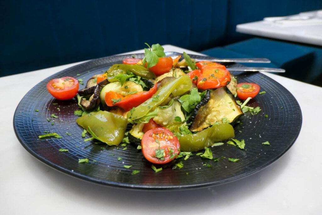 Monsieur avait hésité à choisi la burrata car il en est très friand mais s’est laissé convaincre par une planche grillée (11€), dans laquelle j’ai un peu picoré. La planche met à l’honneur poivrons, aubergines et courgettes. Les poivrons sont doux et fondants et les légumes, plus généralement, sont moelleux, parfumés et bien assaisonnés.
