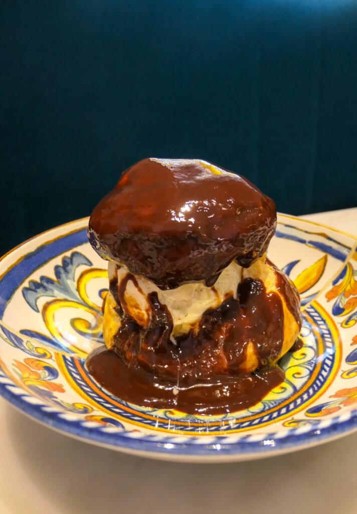 En dessert, l’amatrice de chocolat que je suis a choisi la profiterole (12,50€), un chou avec une boule de glace à la vanille accompagné d’une ganache au chocolat fondu. Une option une nouvelle fois gourmande avec un chou bien ferme, une généreuse boule de glace et un nappage fait de chocolat aux notes de noisettes.